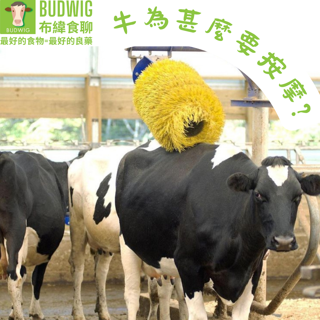 人類都會需要按摩放鬆~牛也是一樣,若能在身心舒暢的狀態下產出的乳源相信也是很優質的~