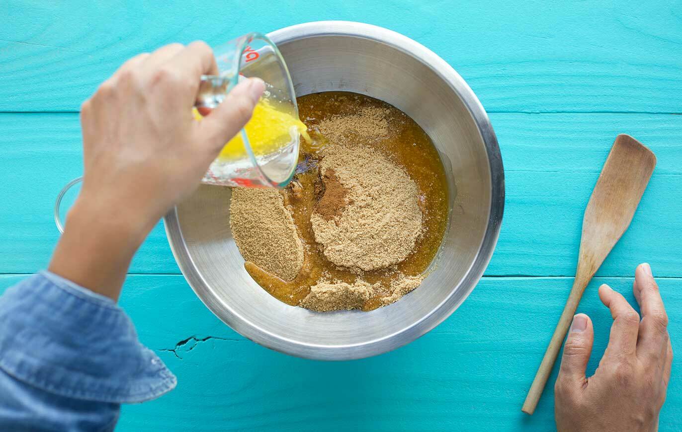 STEP1.從餅皮開始, 將全麥餅乾屑和糖混合在一個小碗中. 加入奶油, 然後將餅乾屑混合物壓入塗有油脂的 8寸盤底部, 並在兩側向上壓高 5公分. 在 175° 下烘烤 5 分鐘, 然後將熱量降至 160°