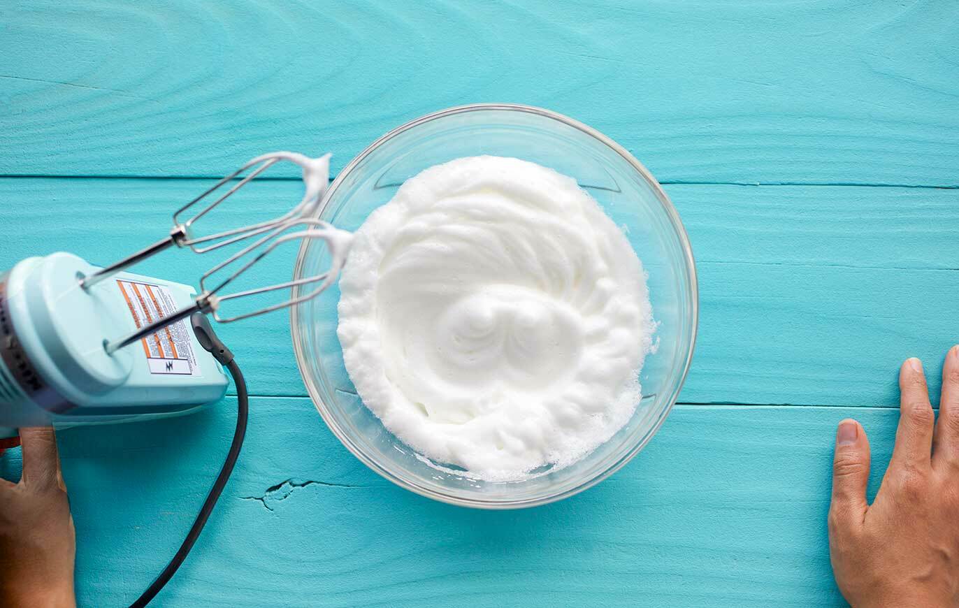 STEP3.在一個小碗中,攪打蛋清直到濃稠, 再把奶油乳酪混合物,然後倒在餅皮上.