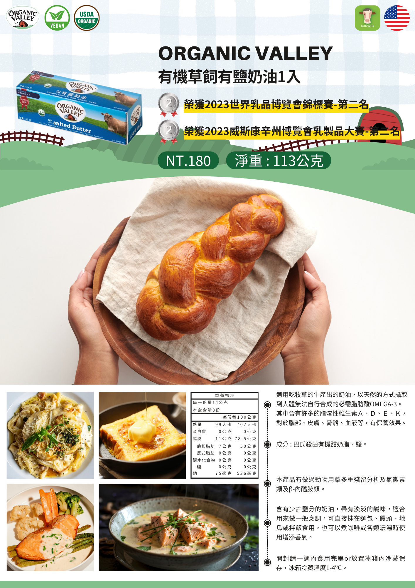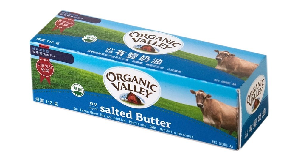Organic Valley的有機草飼有鹽奶油,通過HALAL(清真)及Kosher (猶太)的認證