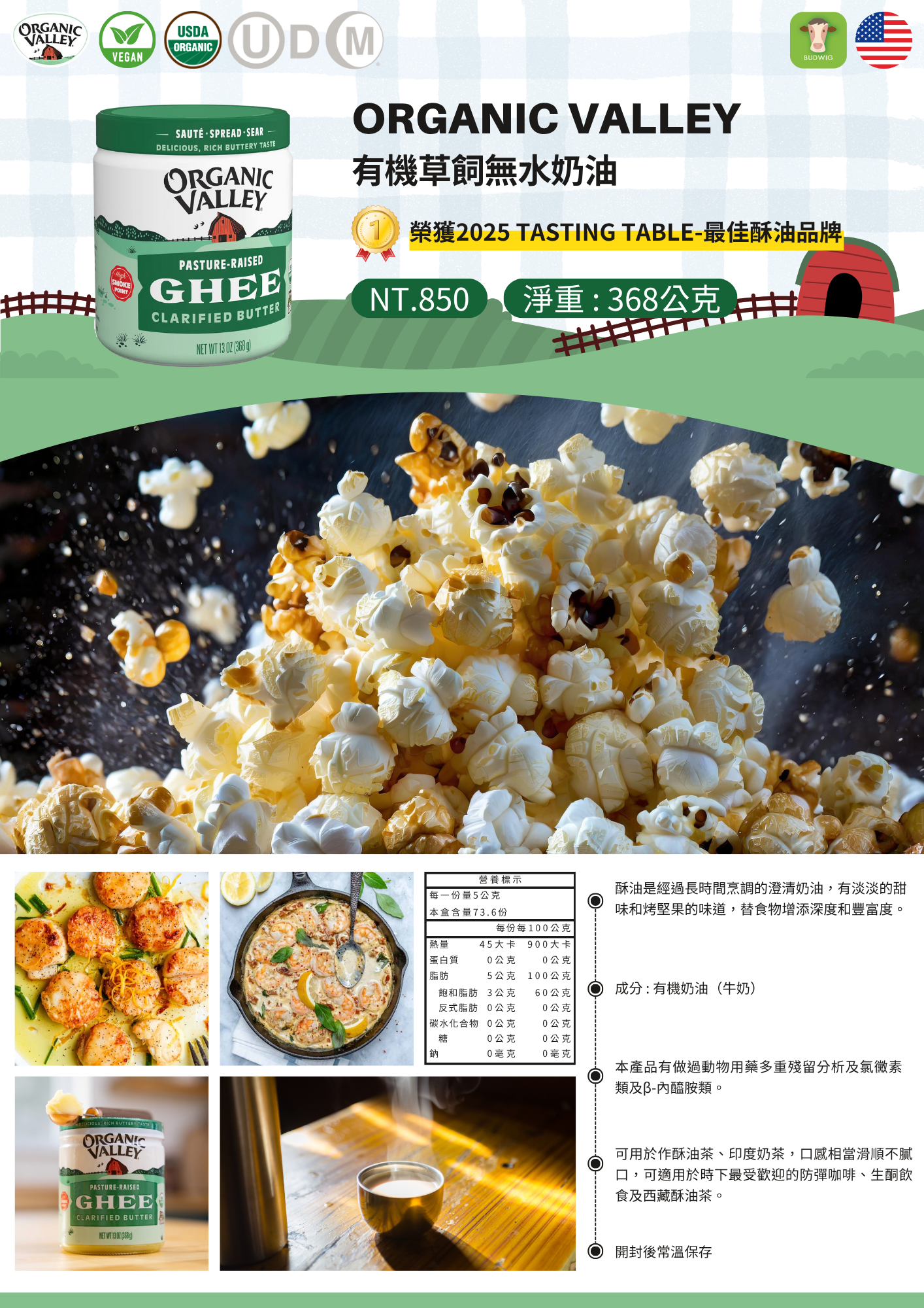 【布緯】Organic Valley有機草飼無水奶油(澄清奶油)